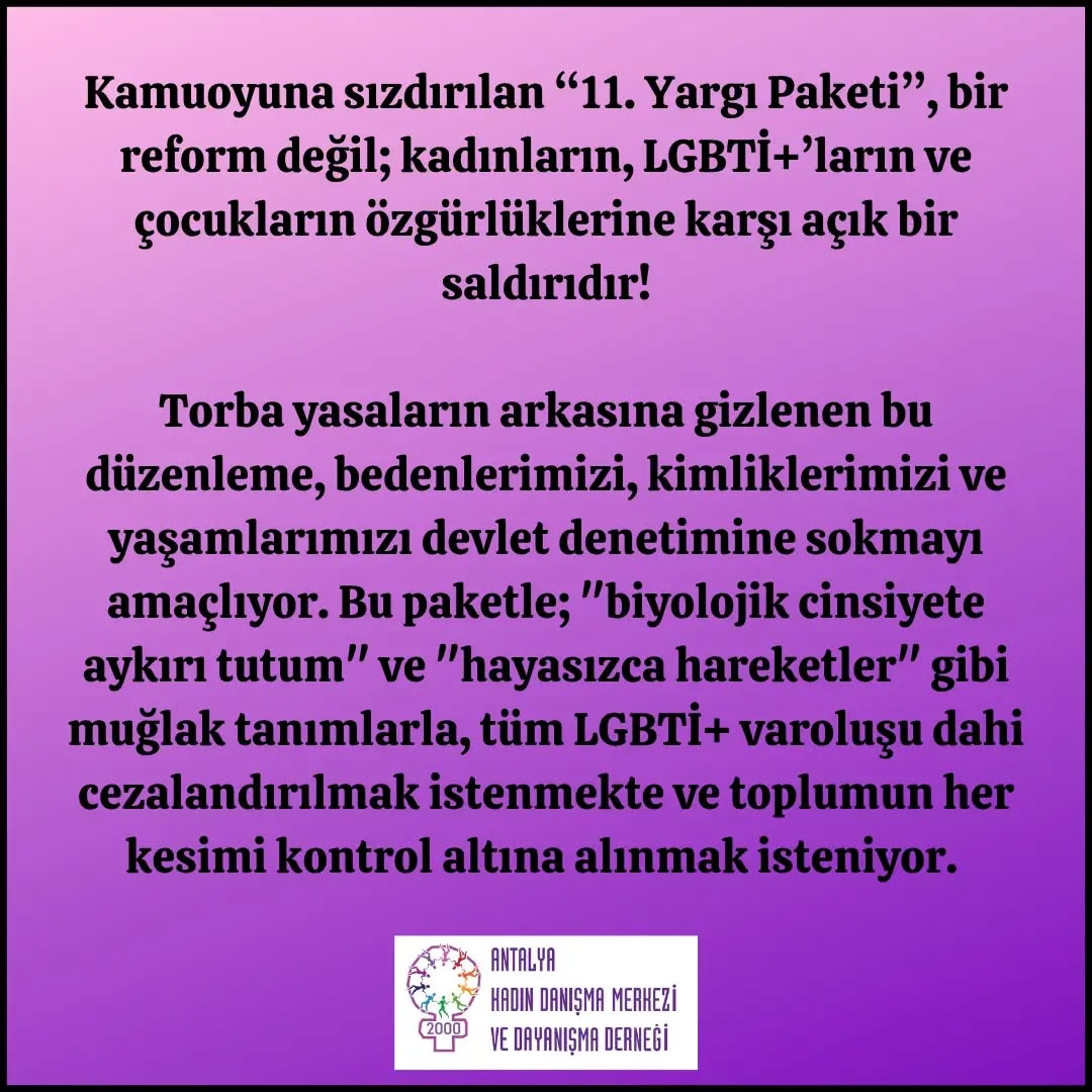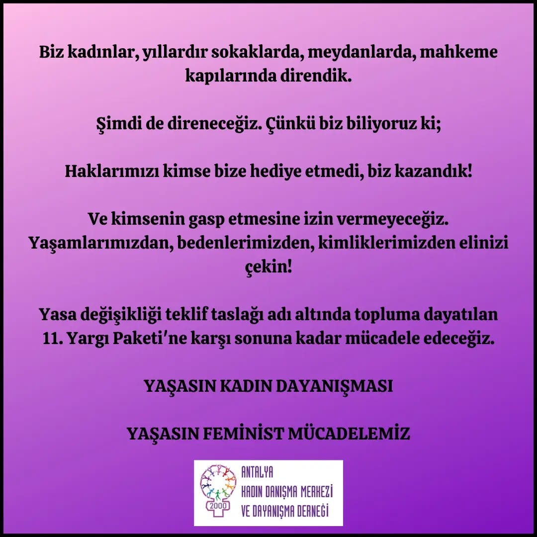 11.yargı paketini geri çek! View Larger Image By antalyakadindayanisma|2025-10-25T11:11:48+03:00October 25th, 2025|Basın Açıklaması, Bilgilendirme, Hukuk|0 Comments Share This Story, Choose Your Platform! FacebookXRedditLinkedInWhatsAppTumblrPinterestVkXingEmail About the Author: antalyakadindayanisma Leave A Comment Cancel replyComment Save my name, email, and website in this browser for the next time I comment.
