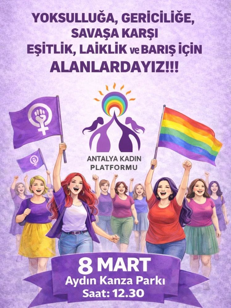 Yoksulluğa, gericiliğe ve savaşa karşı feminist isyanımızla alanlardayız! Erkek egemen düzene, cezasızlık politikalarına ve hayatlarımızı kuşatan karanlığa karşı sözümüzü de öfkemizi de büyütüyoruz. Eşitlik, laiklik ve barış için 8 Mart’ta saat 12.30’da Aydın Kanza Parkı’nda toplanıyoruz. Feminist mücadelemizi büyütmek, dayanışmayı örgütlemek ve hayatlarımızı savunmak için yürüyoruz.